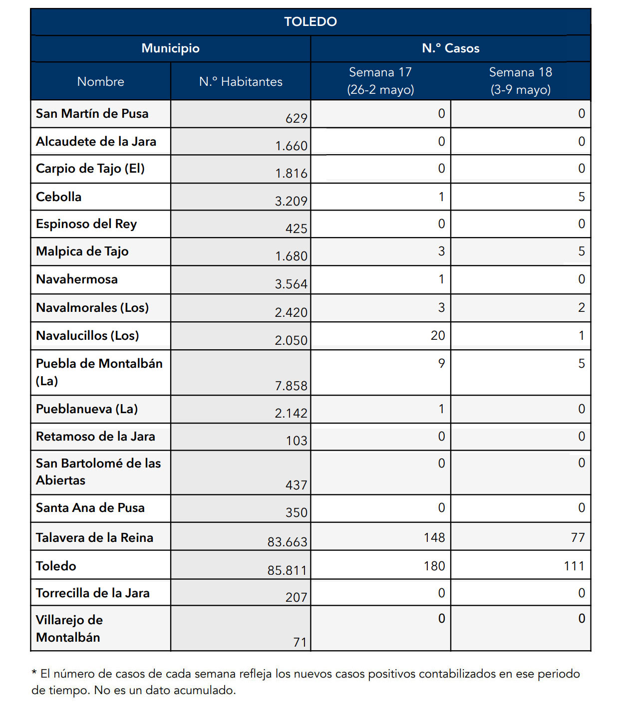 | Casos de COVID en nuestra localidad y alrededores. (Semana del 3 al 9 de Mayo) (17/05/2021) | |||||